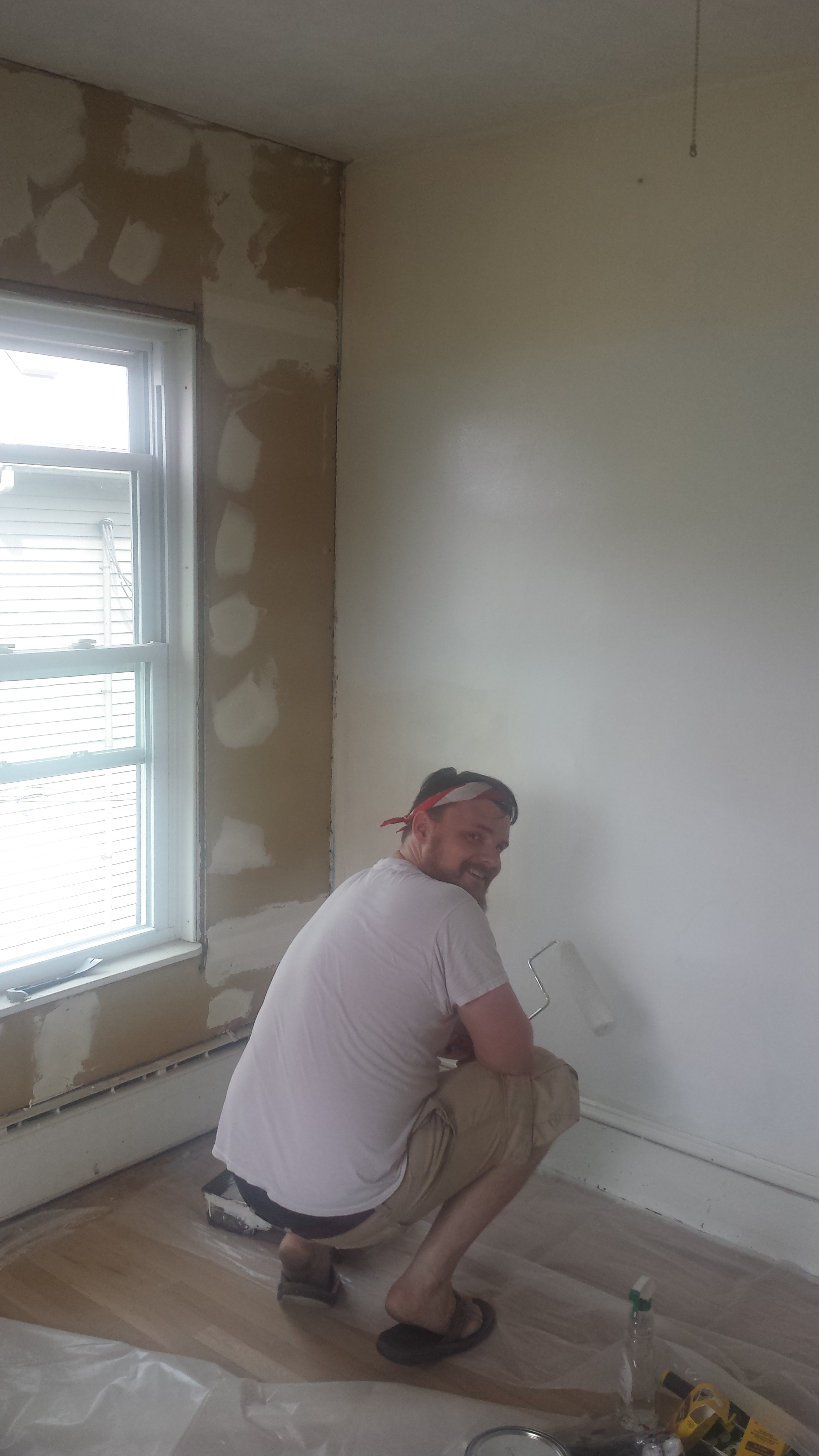 I think the most exciting highlight was saving the built in. I put in new dry wall (all by myself J) and my sister helped me cut new shelves. Shelves really shouldn’t be a hard task, but when ones wonderful house was built in 1900 and nothing, can I stress NOTHING is level or square, its makes everything just a little more challenging. But with fresh white paint and new hardware it looks great! And it will hide all of the many trial and error hair conditioners I buy. I lined the shelves with grey herringbone contact paper to break up all the white. I can’t explain my excitement when started to fill it with things. I think I felt like we were finally really moving in!